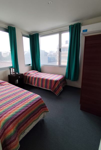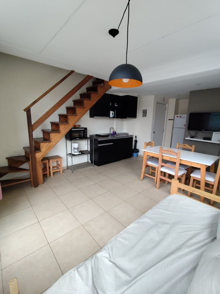 Departamento dos dormitorios en duplex frente al Hospital Italiano. Baño y toillete. Amplio Patio aterrazado. sector de cocina electrico, heladera con freezer Aire frio calor, LCD x cable e internet wifi